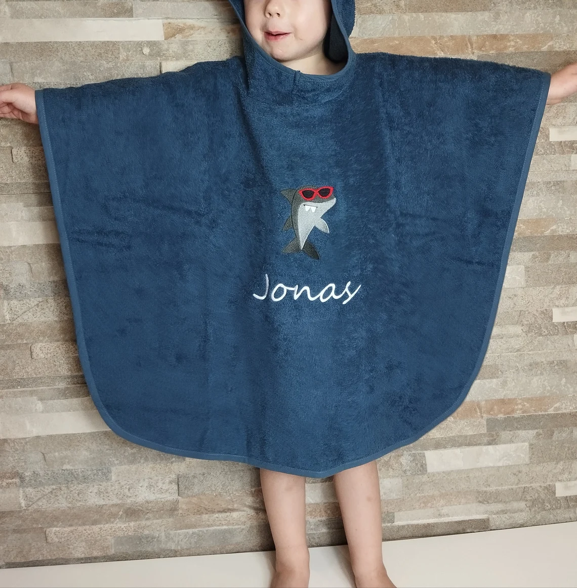 Ob zuhause nach der Badewanne, beim Schwimmkurs, am Strand oder im Urlaub – der bestickte Badeponcho ist vielseitig einsetzbar und ein echter Hingucker. Durch die hochwertige Stickerei mit deutschem Qualitätsgarn bleibt der Name auch nach vielen Wäschen schön erhalten.