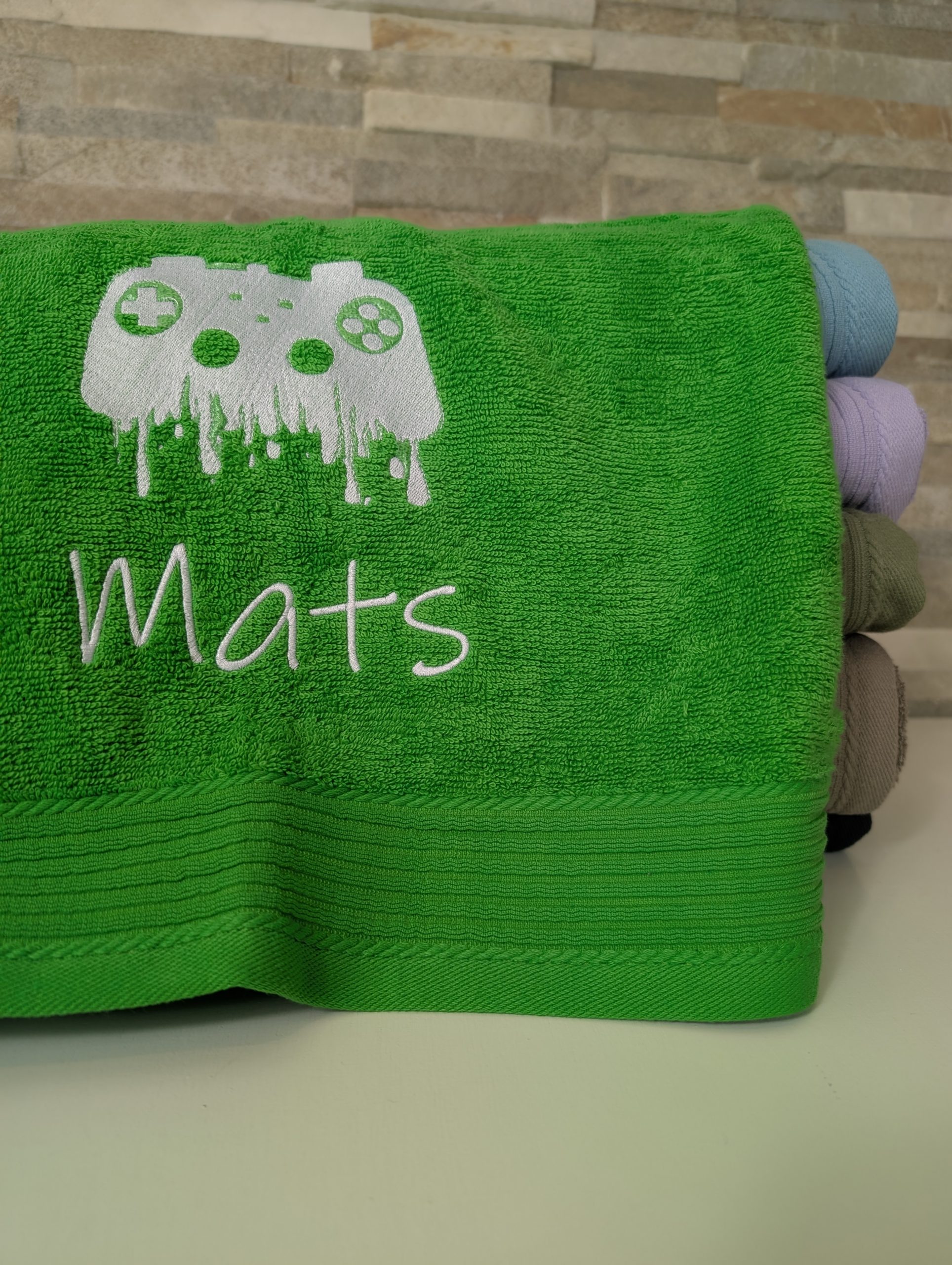 Mit dem aufgestickten Controller und deinem Wunschtext wird jedes Handtuch zu einem unverwechselbaren Unikat.
